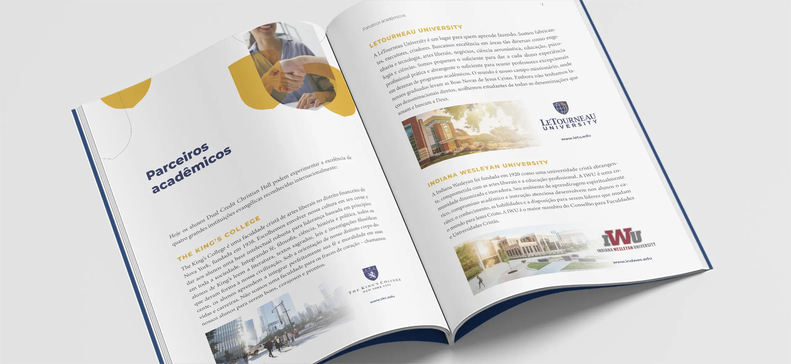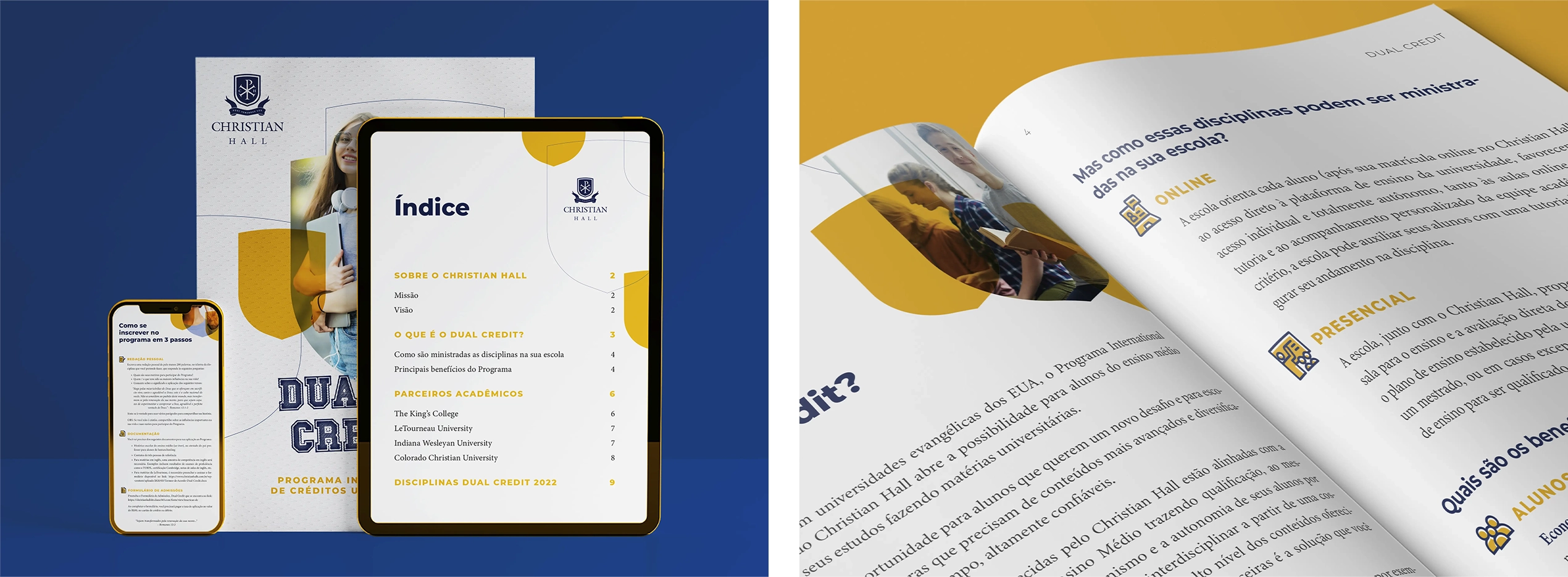 Este e-book foi produzido para o Christian Hall como uma das ferramentas de promoção do modelo Dual Credit de ensino e qualificação de leads para melhor taxa de conversão. Através do material, o interessado pode de forma rápida e clara ser introduzido ao programa e compreender todos os benefícios e funcionamento do mesmo.